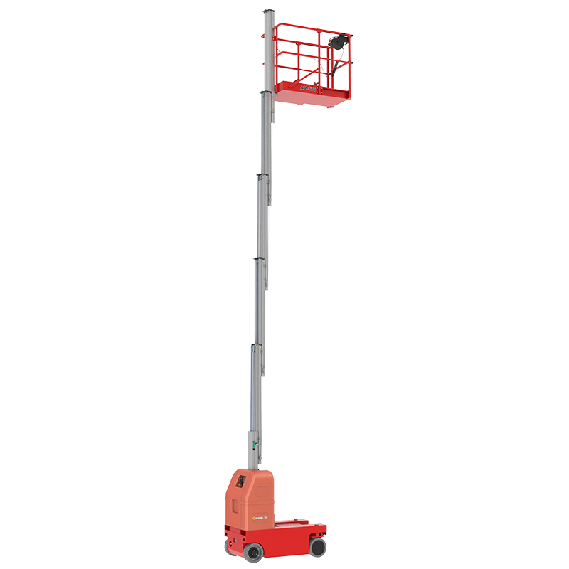 تم تصميم منصة الرفع ذاتية الدفع المصنوعة من سبائك الألومنيوم ذات الصاري الواحد باستخدام سبائك الألومنيوم عالية القوة، مما يوفر هيكلًا خفيف الوزن ولكنه صلب ومستقر مع متانة ممتازة ومقاومة الالتواء. إن نصف قطر الدوران الصغير والتصميم المدمج يسمحان لها بالمناورة بسهولة في الممرات الضيقة وبيئات العمل المعقدة، مما يجعلها مثالية للتطبيقات في المستودعات والمصانع ومراكز التسوق والمطارات. تتميز المنصة بنظام رفع دقيق ومستقر، مما يضمن بدء التشغيل والتوقف السلس مع الحد الأدنى من الاهتزاز لتعزيز السلامة التشغيلية. نظام القيادة الكهربائية الخاص بها موفر للطاقة، ومنخفض الضوضاء، وخالي من الانبعاثات، ويلبي المعايير الخضراء والبيئية الحديثة. بالإضافة إلى ذلك، فهي مجهزة بأنظمة حماية أمان متعددة، بما في ذلك أجهزة الإنذار المضادة للإمالة، والهبوط في حالات الطوارئ، وقفل الفرامل التلقائي، مما يضمن سلامة موثوقة أثناء العمليات المرتفعة.